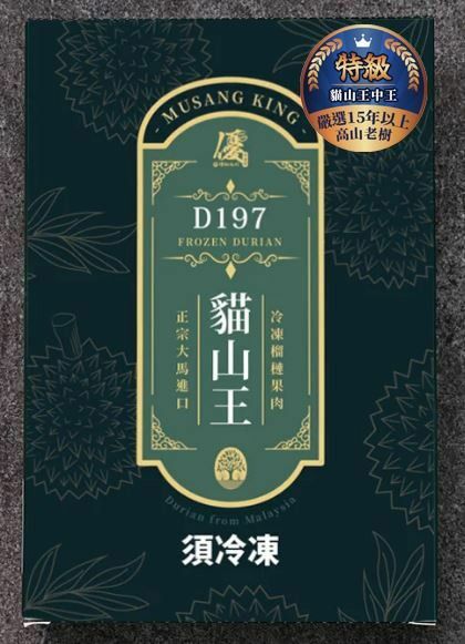 盒裝D197麻坡老樹貓山王中王