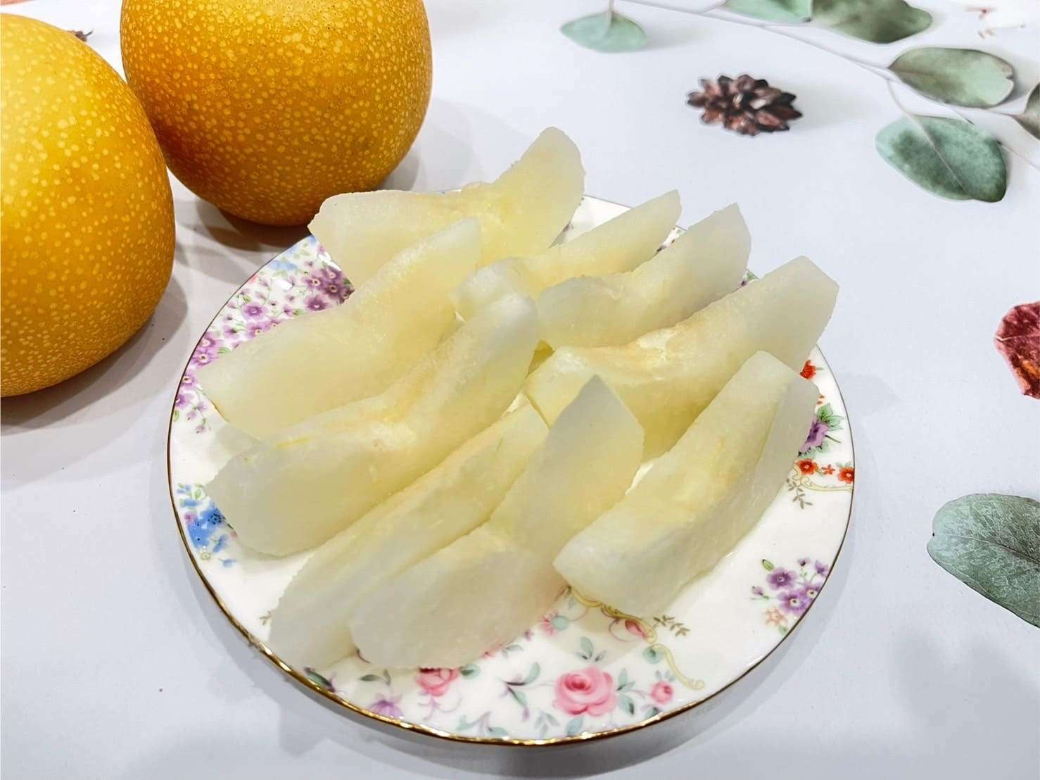 豐水梨外表光澤,果肉雪白,甜中帶微微酸,皮薄多汁,