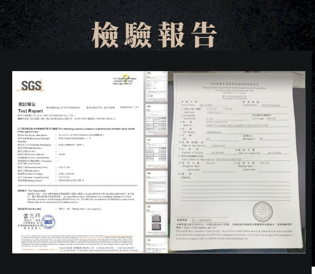 衛福部食品輸入許可/動檢局檢驗證明/外袋SGS檢驗報告/產品責任險