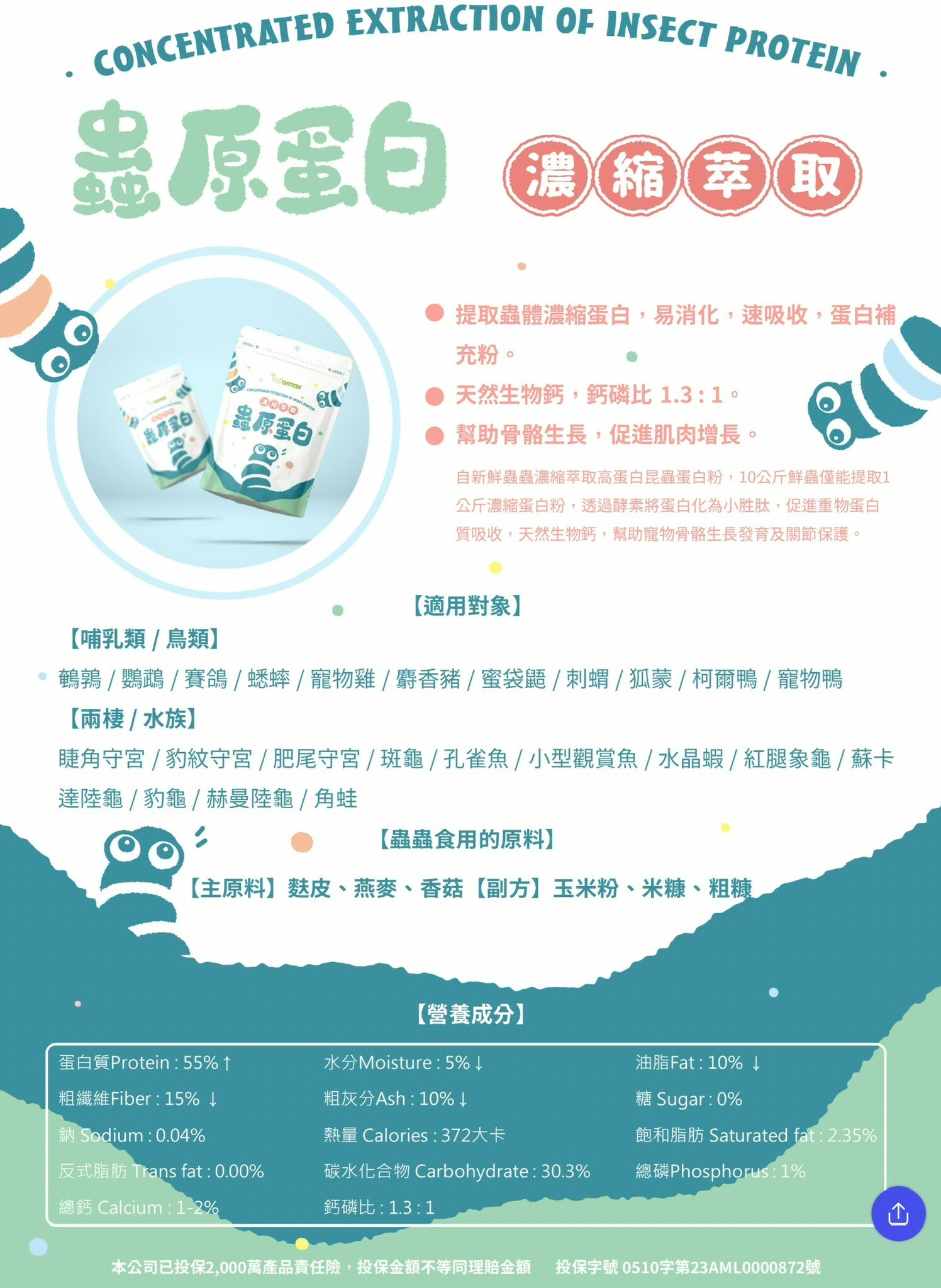 【重(容)量】 50g/包 ( 濃縮高蛋白蟲粉每包30克 )