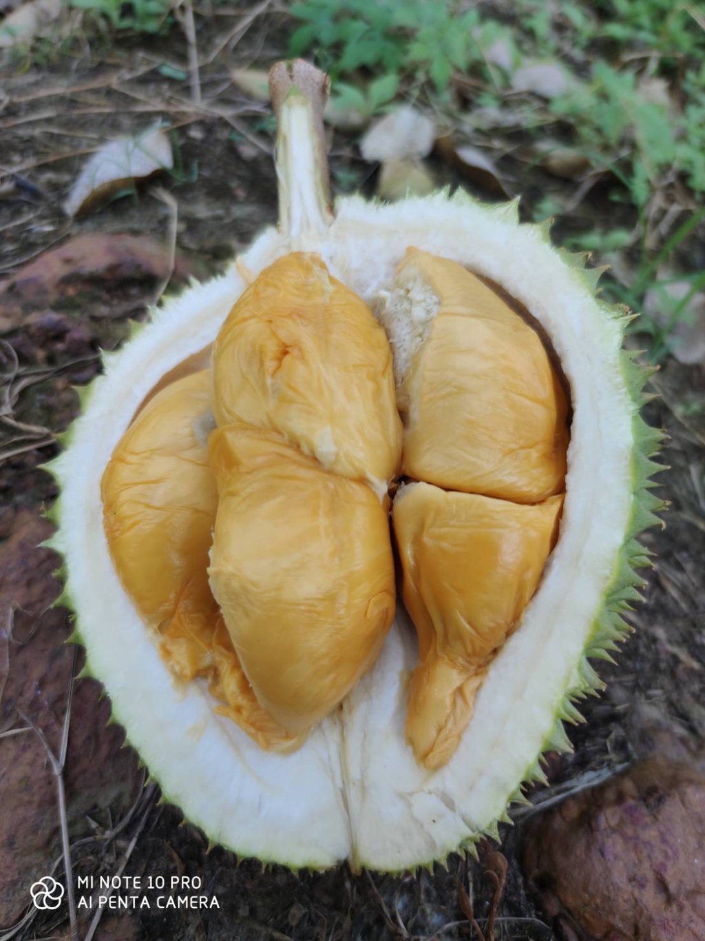 (2)手壓榴槤殼表面刺已經可以壓得下去就差不多就可以除去外殼,盡情食用。