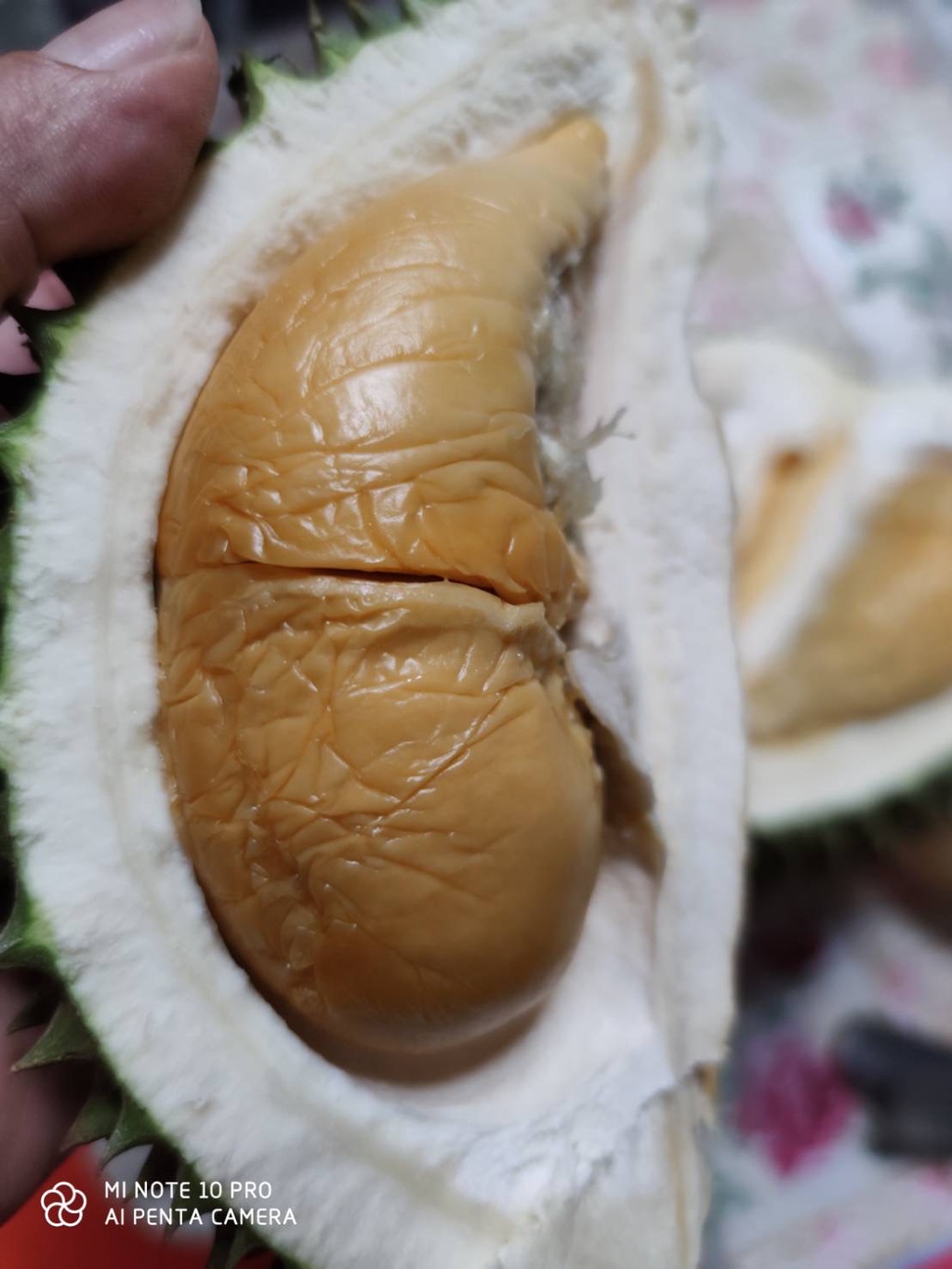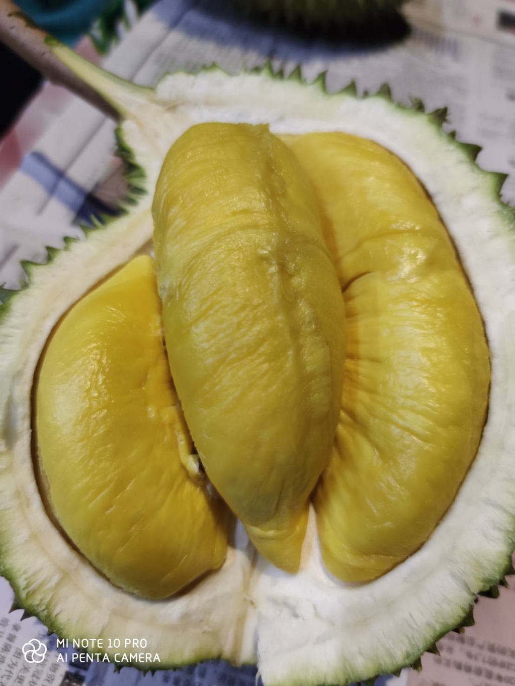 果肉深黃帶一點橙色,甜味較重,較沒有榴槤味,